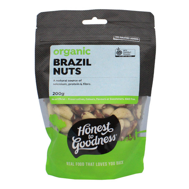 Honest to Goodness Organic Brazil nuts are organically grown and sustainably sourced. Brazil nuts have a crisp yet buttery texture and an earthy taste which is perfect for snacking, creating homemade nut milks or nut butters. Also rich in selenium, healthy fats, protein, and fibre.